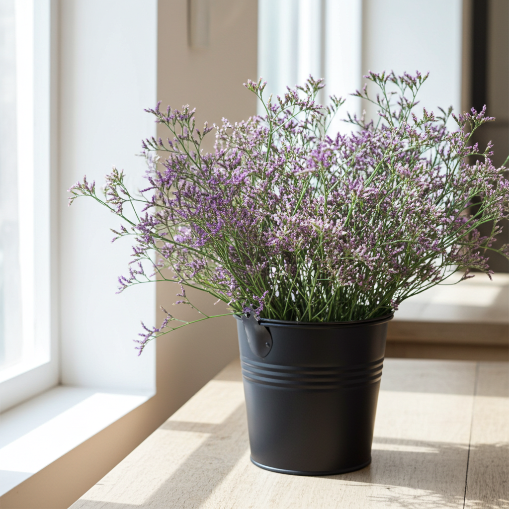 Avoid direct heat or full sun; limonium can dry out quickly.